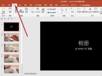 1.我们先在电脑中打开一份PPT文档。然后将照片通过相册功能,导入到每一张幻灯片中。