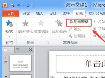 点击动画选项,在其内我们找到动画窗格选项,如图所示: