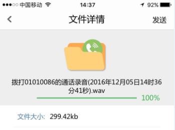 点开录音文件详情,可以做很多事情,你可以下载录音直接试听,也可以将录音文件通过社交软件分享出去。