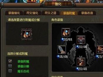 下面强调的一点很重要的附魔技巧,如何让附魔将重点攻击跟重点防御最大化。一般情况下玩家都是有几个魔石就去随便点附魔,但是通过反复的附魔试验,我们会发现当一次性将一件装备满附魔的情况下出的属性会更加完美。
