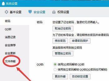 第三步,在“安全设置”中,左侧菜单栏中找到“文件传输”,点击。