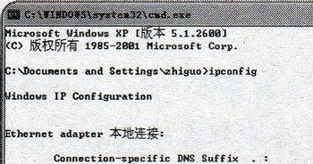 在接着弹出的“命令提示符”窗口中, 把“IPAddress”项后面的一串数字记录下来, 如图所示。这一串数字,我们将其称之为“IP 地址”。