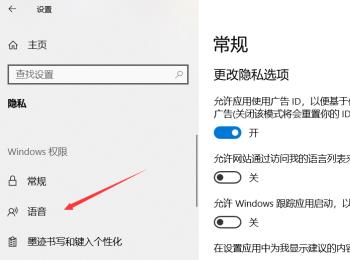 3.第三步,在下图所示的隐私页面中,点击页面左侧的语音选项。