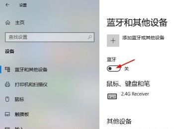3.第三步,在下图所示的设备页面中,开启蓝牙下面的开关。