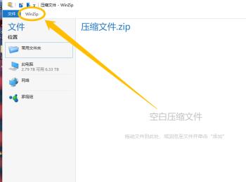 1.第一步,双击或者右击打开WinZip软件,接着点击左上角箭头所指的WinZip选项。
