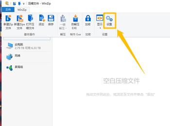 2.第二步,来到下图所示的WinZip页面后,点击页面顶部的设置选项。