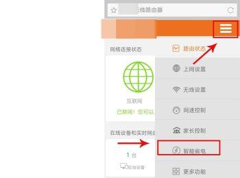 2. 接登录进入路由器页面后,点击右上角的三横图标,在打开的菜单中,选择【智能省电】选项。