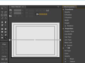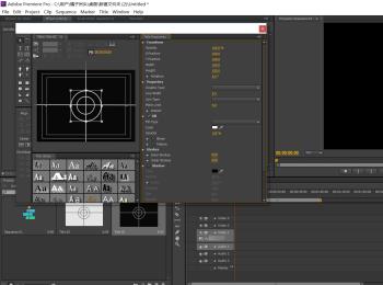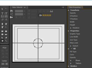 3. 点击椭圆形工具,按住键盘上的shift键。先绘制第一个圆,然后点击垂直居中和水平居中的按钮,可以使我们的圆形处在居中状态。接下来,在字幕属性面板中,图形类型设置为关闭,曲线线宽设置为5,填充颜色设置为黑色,然后使用同样的方法,再绘制两个圆并按照上面的参数进行设置。
