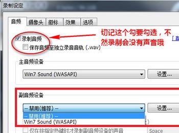 在我们的音频选项下面勾选录制音频选项,选择主音频设备,这样我们就能录制电脑自带的声音了,当然,如果大家还想录制麦克风的声音,只要选择我们的副音频设备就可以,否则就禁用;使用bandicam录制没声音主要是下图中的录制音频前面的勾未勾选所以才会导致无声音。