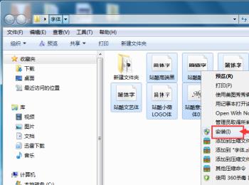 7.第七步,全选字体,接着右击字体,然后点击弹出窗口中的安装选项。