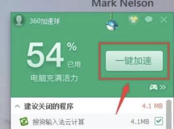 1. 首先在电脑上安装“360小助手”软件,安装之后,在桌面上找到悬浮的“360加速球”,点击加速球,在弹出的窗口中,点击右上方的“一键加速”按钮进行加速。