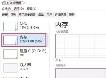 2. 调出电脑中的任务管理器,上方切换到“性能”选项下,查看当前电脑的内存使用情况。