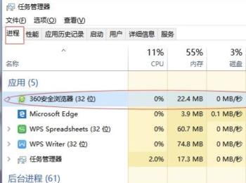 3. 接下来切换到“进程”选项,将刚才占据内存多的应用选中,点击右下角的“结束进程”进行清理。