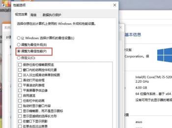 7. 在弹出的“性能选项”窗口中,点选上“调整为最佳性能”(虽然将视觉效果牺牲掉了,但是可以让系减少对硬件资源的占用)。
