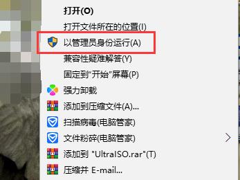 2. 第二步先右键单击【UltraISO】图标,接着在弹出的菜单栏中根据下图所示,点击【以管理员身份运行】选项。