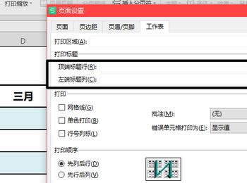 4. 第四步打开【页面设置】窗口后,根据下图所示,按照需求选择【顶端标题行、左端标题行】。
