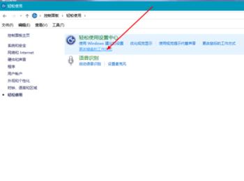 3.第三步,在下图所示的轻松使用页面中,点击箭头所指的更改键盘工作方式选项。