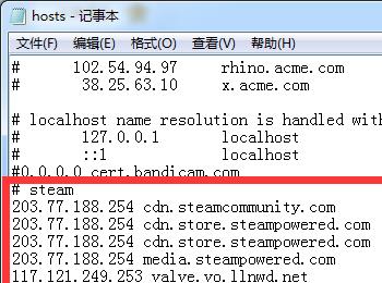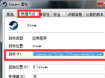我们找到hosts文件,然后以记事本格式打开,然后输入以下内容:23.52.74.146 steamcommunity.com,然后找到steam图标右击“属性”选择“快捷方式”在“目标”加入以下内容: -community="https://steamcommunity.com" 例如:E:\steam\Steam.exe -community="https://steamcommunity.com"