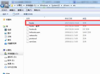 3、其次我们打开c:\windows\system32\drivers\etc路径下的hosts;注意:记得备份 。