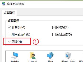 4. 第四步,弹出桌面图标设置窗口后,勾选下方的网络功能,然后点击确定按钮。