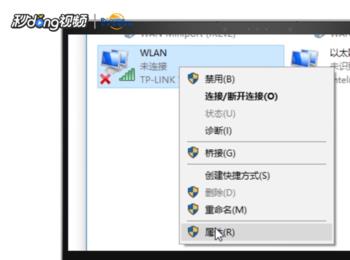 然后在弹出界面找到并右键点击“无线网络连接”,选择“属性”