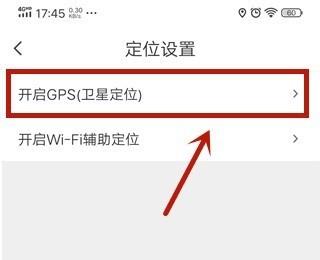 4. 如图,在打开的定位设置页面,选择【开启GPS(卫星定位)】选项,打开。