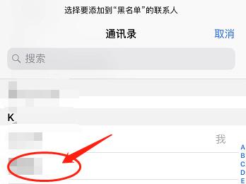 4. 第四步在跳转的页面中,根据下图箭头所指,点击【阻止联系人】选项。