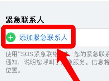 5. 第五步在跳转的页面中,根据下图箭头所指,点击【添加紧急联系人】选项。