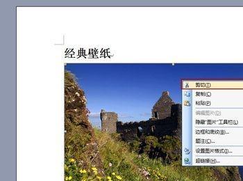 3下面解决文档瘦身方法。打开要瘦身的文档,然后在图片上右击,选择“剪切”。