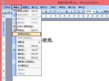 4单击菜单栏的“编辑”,然后选择“选择性粘贴”。