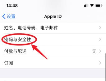 3. 在打开的Apple ID页面,选择密码与安全性的选项,打开。