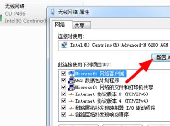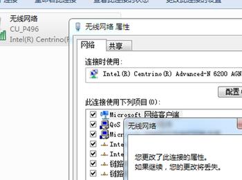 5. 如图,在弹出的无线网络属性窗口中,点击右上方的配置按钮,在弹出的配置提醒窗口中,点击是;