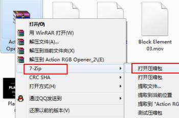 5.之后我们选中,右键,在打开的窗口中我们点击“7-zip”-“打开压缩包”。