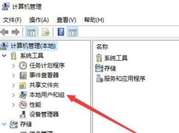 4. 第四步,打开计算机管理窗口后,点击左侧的本地用户和组选项。
