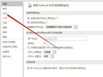 4. 进入选项重口下,在左侧菜单中点击“日历”选项。