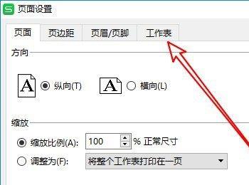4. 如图,弹出页面设置的窗口,上方切换到工作表选项下。