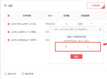 3.添加好文件之后,点击右侧的“页码选择”,在弹出的窗口中,选择想要提取文件的页码。或者也可以设置输出的目录,设置好之后,点击右下角的“开始提取”按钮等待提取完成即可。