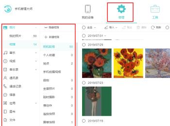 4. 或者点击上方的“管理”图标,在右侧就会打开手机文件目录树形式展示的管理页,在这里也可以进行管理;