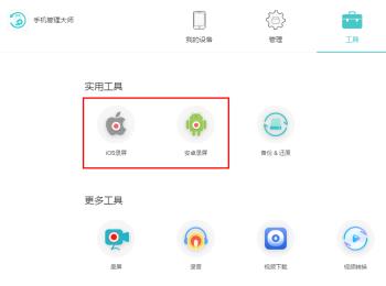 5. 另外,点击上方的“工具”选项,实用工具下,可以选择“iOS录屏”或者“安卓录屏”来使用录屏功能;