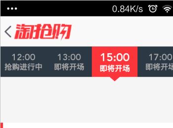 如果想看以往或未来的抢购,可以在顶部的时间栏,通过手指滑动来选择时间。如选择即将到来的淘抢购,为了不错过最佳的抢购时间,可以点击“提醒我”。