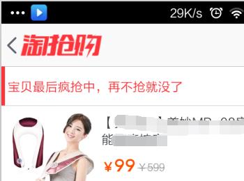 进入到淘抢购页面后,会显示当前的抢购内容,如果觉得有合适的,不妨出手点击“抢一下”,就会进入正常的网购界面。注意的是淘抢购下单后必须30分钟内支付,否则将自动取消。