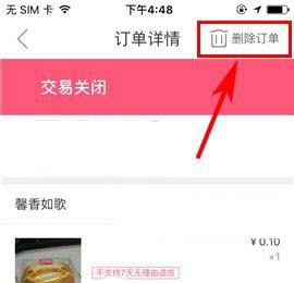 2)接着选择列表中的相关订单,随后再点击其详情页中的【删除订单】;(如下图)