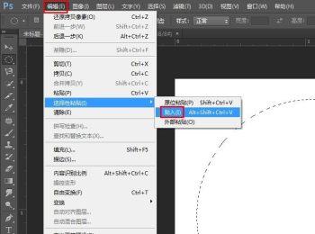 6. 然后点击上方的“编辑”菜单,在打开的菜单中,依次选择“选择性粘贴—贴入”选项,将图片粘贴到圆圈中。