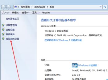 2、在靠左侧的地方找到“高级系统设置”,图中箭头指向的地方;