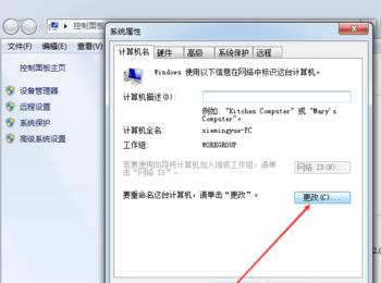 4、然后页面跳转了一下,如图所示,选择更改,前边有提示的说,要重命名这台计算机,点击更改;