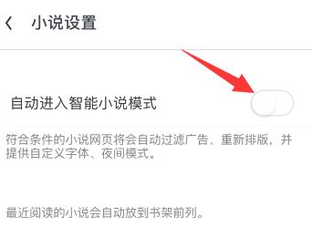 4.最后点击“自动进入智能小说模式”后面的按钮开启该功能即可