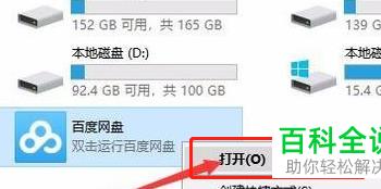 1.第一步,双击或者右击打开此电脑图标,接着右击百度网盘图标,然后点击弹出窗口中的打开选项。