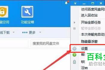 2.第二步,来到下图所示的百度网盘软件主页面后,点击右上角的菜单图标,接着点击弹出窗口中的设置选项。