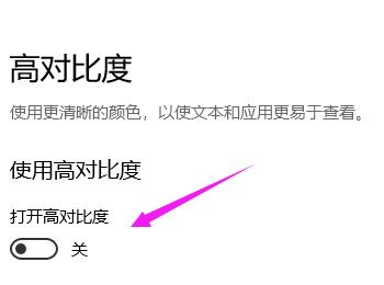 5. 第五步在右侧页面中,根据下图箭头所指,将【打开高对比度】选项设置为【开】。