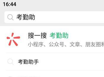4. 然后在打开的小程序页面,点击搜索框,输入考勤助理,进入搜索,在结果中,点击考勤助理服务选项,进入新的页面,点击考勤签到选项